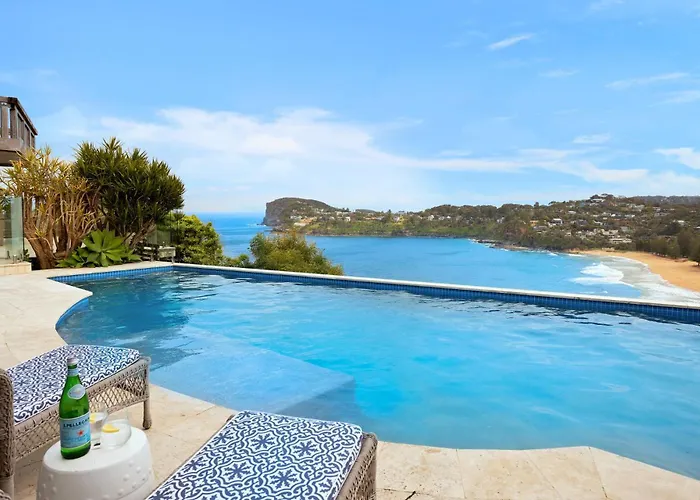 このベッドルーム3室の別荘はイルカ・パーク・パーム・ビーチから2.4キロメートル離れた所で、ホエール・ビーチ少し離れた離れた場所にあります。 浴室3室のヴィラはガバナー・フィリップ・パークなどの自然の名所から徒歩で25分の場所にあります。 宿泊施設から4.9キロメートル離れたニューポート・ビーチも訪れることができます。